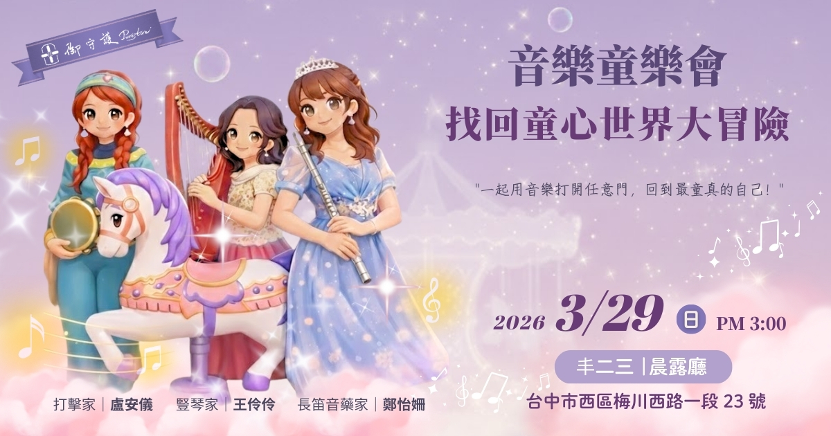 長期支持勵馨基金會小媽媽與小腳丫服務的「御守護」,三月二十九日下午三點將在丰二三晨露廳舉辦「御守護 音樂童樂會 找回童心世界大冒險」,邀請民眾一起走進這場童心未泯的音樂世界,在旋律中相遇、在互動中連結,找回那份最純粹的感動。
